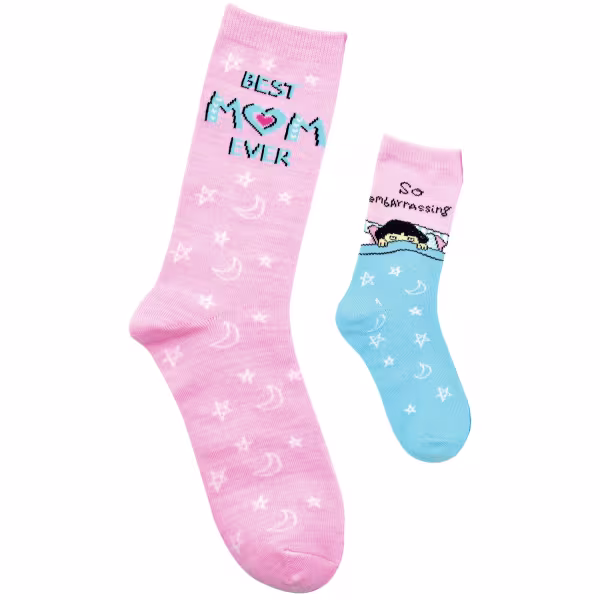 2 pair Sidekicks Best Mom / Embarrassing, Mommy and Me Socks Set