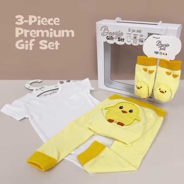 This adorable Baby Gift Set containing a matching Boogie Toes Rattle socks pair, a Boogie Tights baby legging and a Boogie tee's Baby Bodysuit.