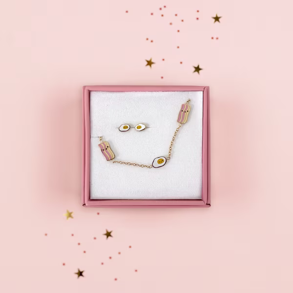 Bacon & Eggs Boogie Charms Children Bracelet & Earrings Set