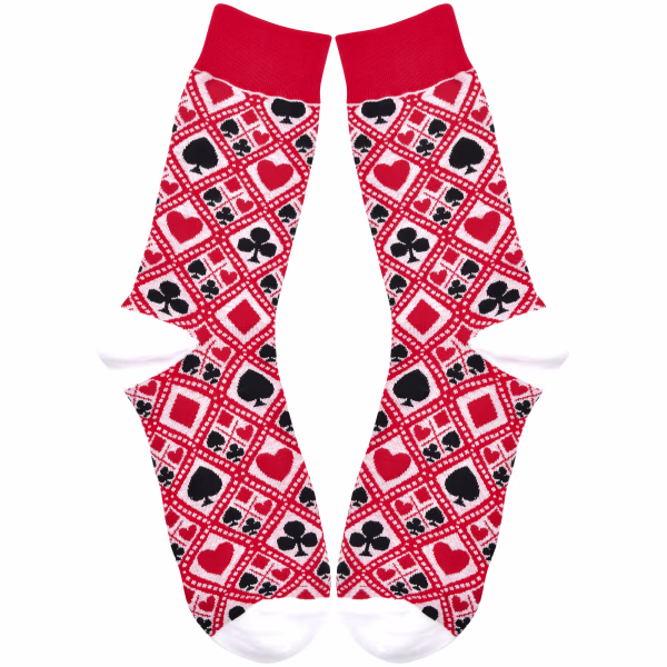 Unique fashion is definitely in the cards when you don this wild blackjack themed pair of socks.