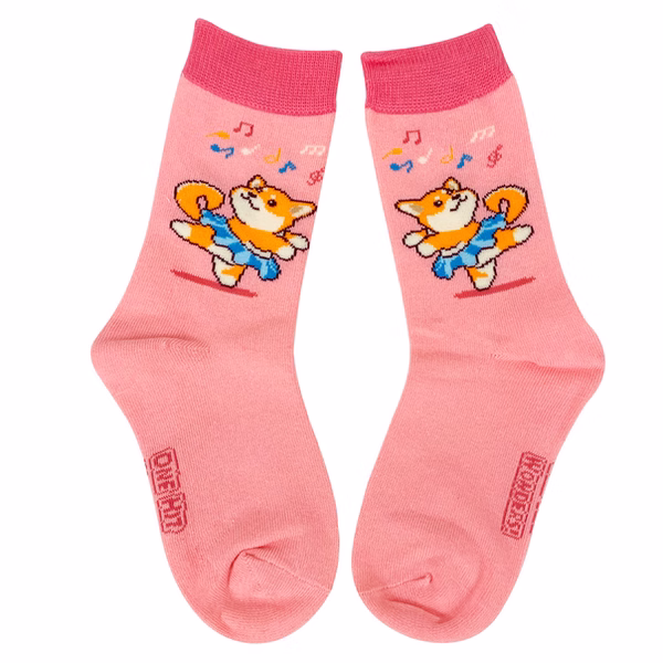 Get ready to boogie! These adorable pink socks feature a charming corgi rocking a blue tutu and some serious dance moves. Perfect for kids who love to twirl, prance, and bring joy wherever they go.