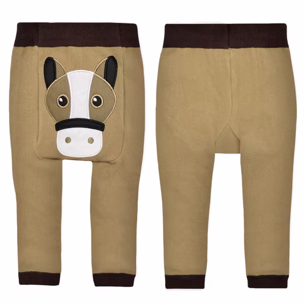A neutral essential that pairs well with a white tee, blue, black and more, these pants feature an adorable horse that says "neigh" to typical kid clothes.