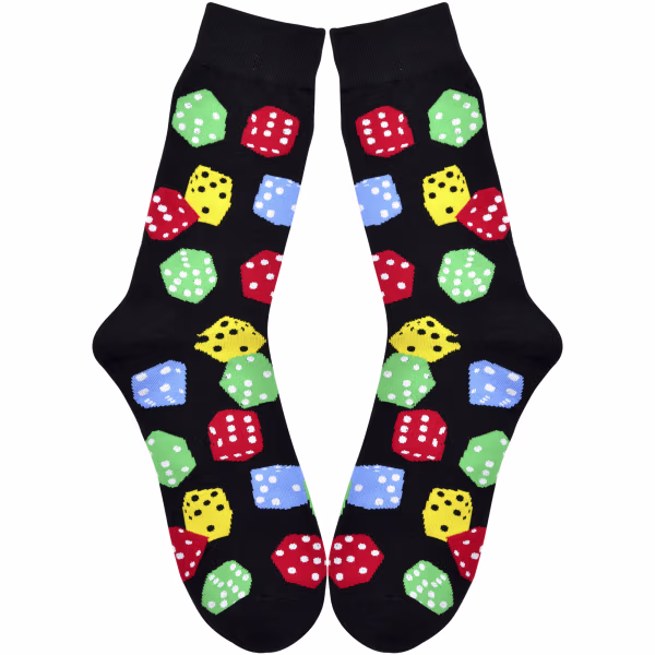 A winning pair by any standard, these socks feature cool colorful dice on a jet-black background.