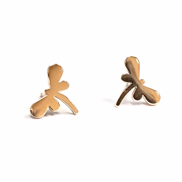 Tiny dragonflies garner endless compliments! Simple, yet detailed, they really stand out in rose gold coloring. Our stud style earrings are suitable for children (4+) and adults, alike.