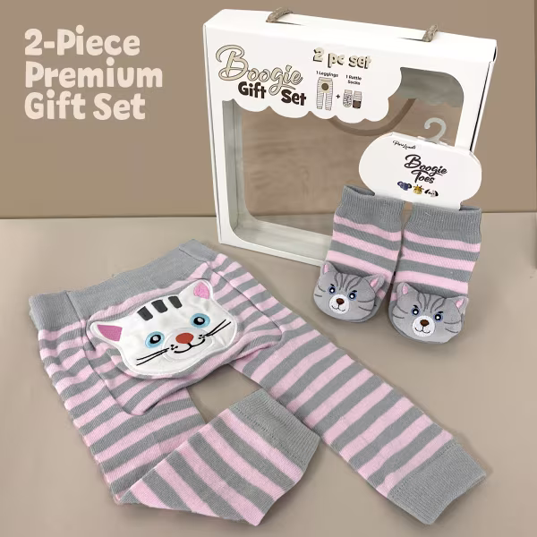 Gray/Pink Cat, 2-Pc Boogie Toes & Tight Baby Gift Set (6-18m)