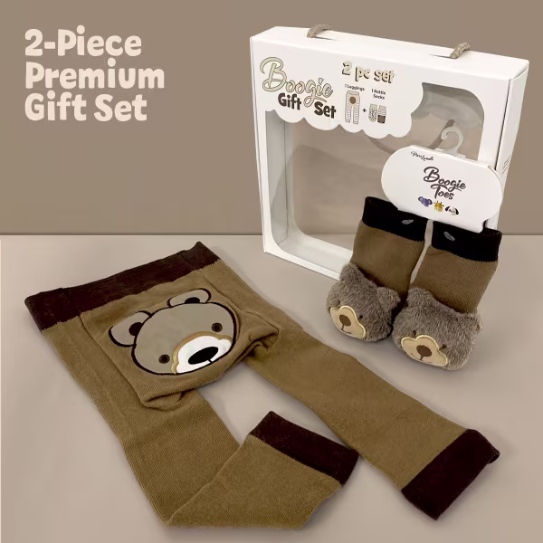 This adorable 2pc Baby Gift Set contains a matching Boogie Toes Rattle socks pair and a Boogie Tights baby leggings.