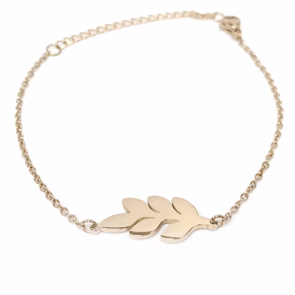 Leaf bracelet, PVD Rose 18K Gold on hypoallergenic 316 surgical Stainless Steel.