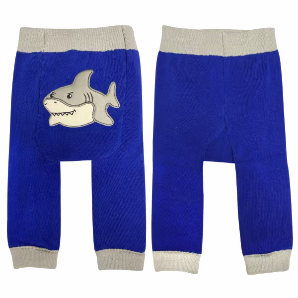 Grey and smiley, he looks dapper against a navy backround on these fun pants designed to delight young sea-lovers--and their parents.