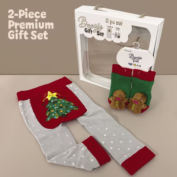 This adorable 2pc Baby Gift Set contains a matching Boogie Toes Rattle socks pair and a Boogie Tights baby leggings.